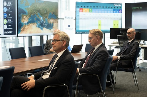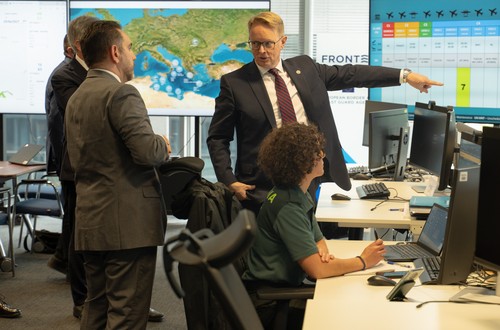 On 25 April, Commissioner Magnus Brunner visited Frontex Headquarters. He explored two core elements of our mission: operations and values. At the Operations Centre, he saw how cutting-edge technology supports Member States in the field. In his meeting with the Fundamental Rights Officer, he discussed how values guide our daily work. He also met with staff, the people who keep the agency running. At Frontex, securing borders and protecting values always go hand in hand.