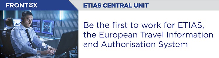 Recruitment for ETIAS Central Unit has started! Recruitment for ETIAS Central Unit has started! 2021-01-11 With the New Year come new job opportunities at Frontex. We are currently looking for Senior Assistants (Application Handlers and Carrier Support Operators) in the ETIAS Central Unit, the key element of the European Travel Information and Authorisation System (ETIAS). Read more