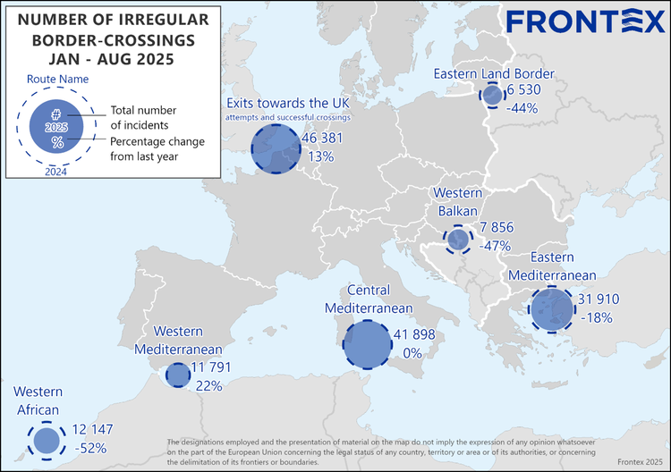 irregular crossings increased by 22%. In August alone, arrivals rose by nearly